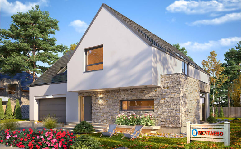 Дом, впечатляющий своей архитектурой и мощью. Современный дизайн и архитектура в сочетании с классической уютной планировкой - отличный выбор для семьи из 3-5 человек. Дом с 4-х сторон Прекрасный белоснежный фасад благородной армадой высится на участке. Остроконечная сложная крыша устремляется вверх. Монолит стен изредка прерывается красивыми вставками из натурального камня. Терраса в массиве дома создает атмосферу нерушимой безопасности. Дом кажется закрытой крепостью, окна не большие, но их равномерное распределение по фасаду обеспечивает правильное естественное освещение. Планировка Мансардный дом средней площади вмешает в себя просторное крыльцо, уютный небольшой тамбур, воздушную прихожую - холл, в которой скромно расположилась лесенка. По правую сторону - гараж на два автомобиля с котельной. Гостиная в 37,9 кв.м. делится на зону кухни с кладовой, столовую и гостиную зону отдыха с выходом на террасу. С/у с душевой кабиной. Второй этаж имеет интересное планировочное решение -