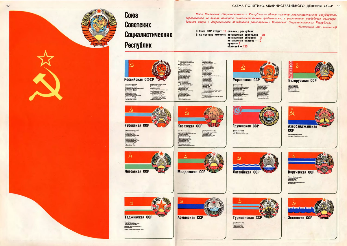 1.В различные годы в состав Советов входило от 4 до 16 республик. На протяжении советского периода государство состояло из 15 республик. В период, когда СССР достигал 16 республик, в состав Советов входила Карело-Финская Советская Социалистическая Республика.