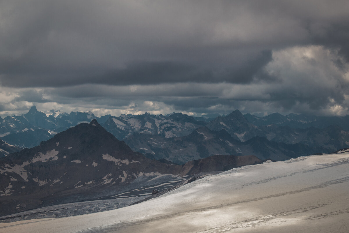 Показываю виды с высоких склонов Эльбруса. Станция канатной дороги Гара-Баши (3847 метров над уровнем моря). Потрясающе!