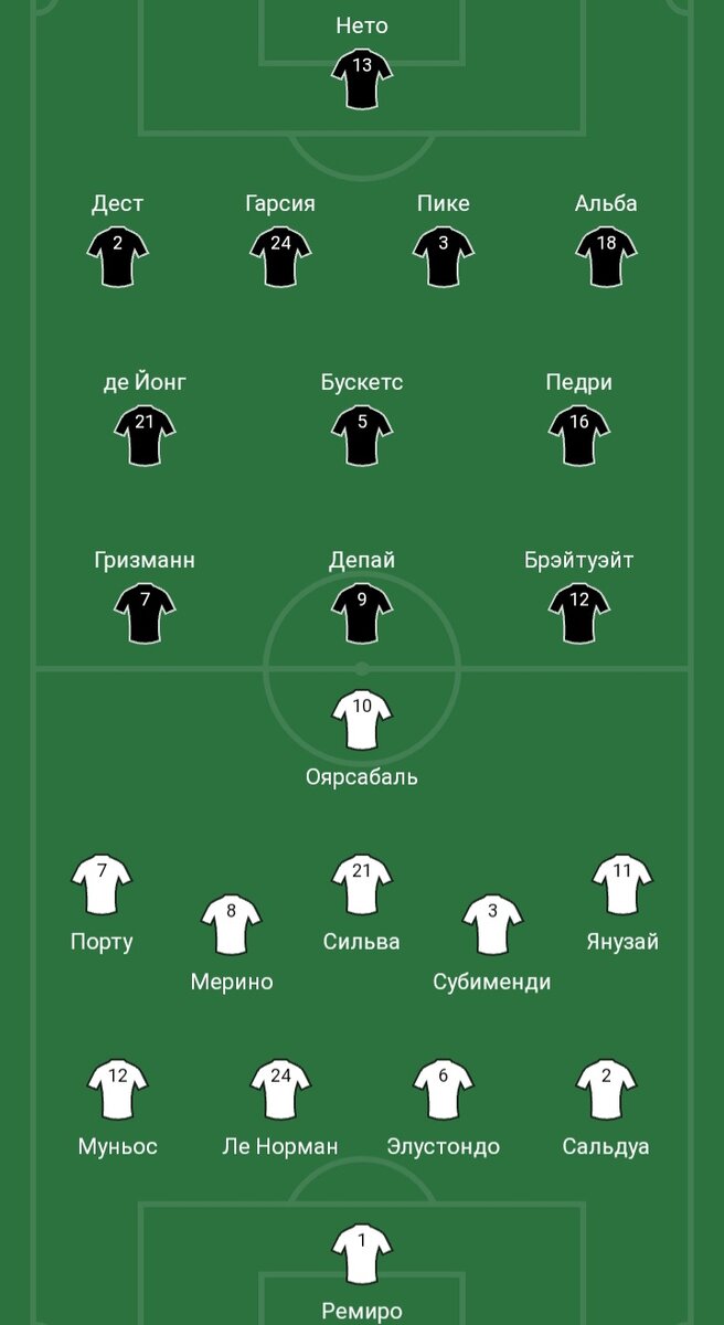 Все гадали, какой же настрой будет у Барсы перед матчем с Сосьедадом. Лично я верил, что всё будет нормально и от одного Месси, Ла Лига особо ничего не потеряет. Сосьедад же не удобный соперник для многих становится, в не давнем времени, который чуть не отобрал чемпионство. Барселона с первых минут взяла Реал за узду и вот уже Брайтвайт бьёт во вратаря, а затем Гризманн отправляет снаряд над перекладиной в следующей атаке. Барселона полностью задавила Реал Сосьедад, не давая им выйти со своей половины поля, хотя нет, один раз всё-таки вышли, вот только эту атаку вспоминать не приходится, ведь она ничем не примечательна. Но Барселона не заметив эту атаку Сосьедала открыла счёт, Пике заколотил мяч в ворота Реала, после подачи 1-0 Барса давила по всем фронтам, в середи встречи владение мячом было примерно 64 на 36 в пользу Барселоны. Все попытки Реала Сосьедада были загублены ещё на корню, а Барсе мешал вратарь.правда вратарь тоже не железный и Брайтвайт после того, как Де Йонг проскочил