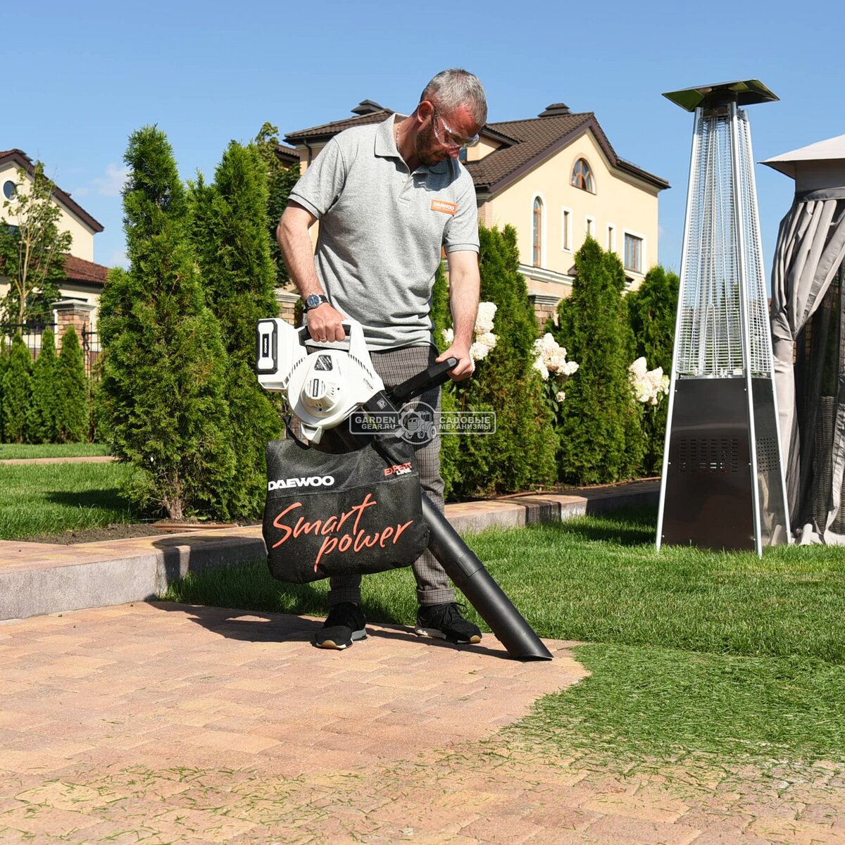 По популярности среди потребителей продукция южнокорейской компании «Дэу» уступает технике других, более «раскрученных» брендов. Однако и в ее ассортименте есть крайне удачные модели. Взять хотя бы Daewoo DABL 6040Li. Уже по названию понятно, что это снова устройство 2 в 1. А сам производитель вообще позиционирует его как 3 в 1: пылесос, воздуходувка и измельчитель. За последнюю функцию отвечает отдельная металлическая звездочка, которая легко справляется с палой листвой, тонкими веточками, соломой и другим садовым мусором. Измельченной листвы в мешок помещается больше, а значит, остановок для его опустошения придется делать меньше. А еще мелко порубленная листва быстрее превратится в перегной.