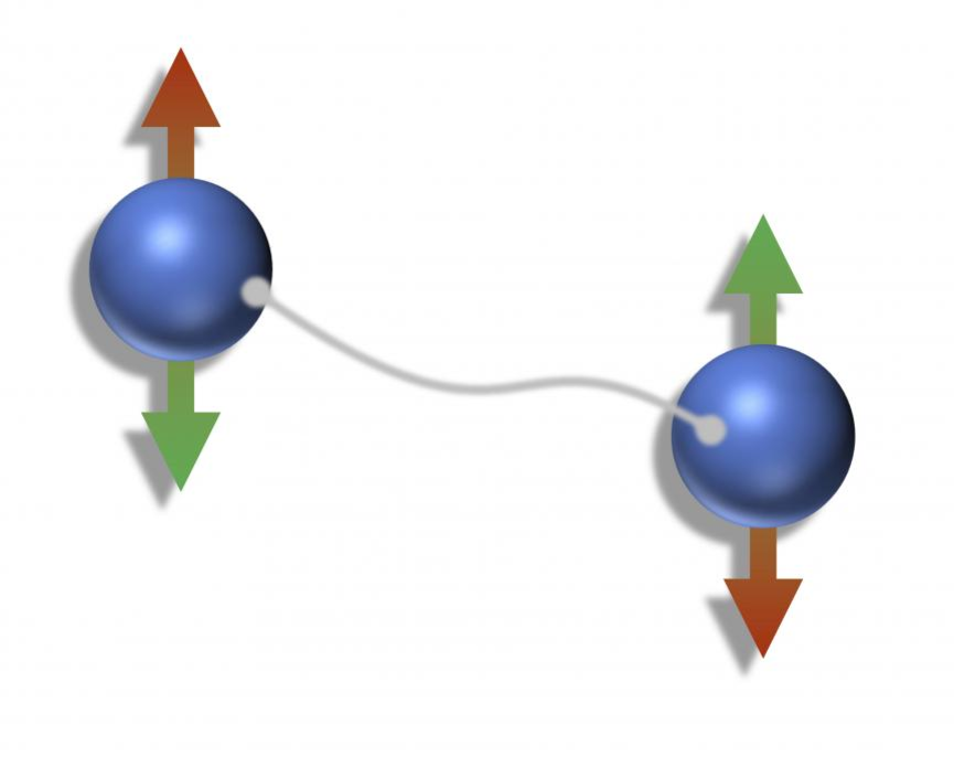 Две частицы, скажем электроны, в «запутанном состоянии», демонстрируют очень таинственный вид связи, или «корреляции». Если один каким-либо образом возмущается, это мгновенно влияет на другой, даже если они разнесены в пространстве очень далеко на огромные расстояния.