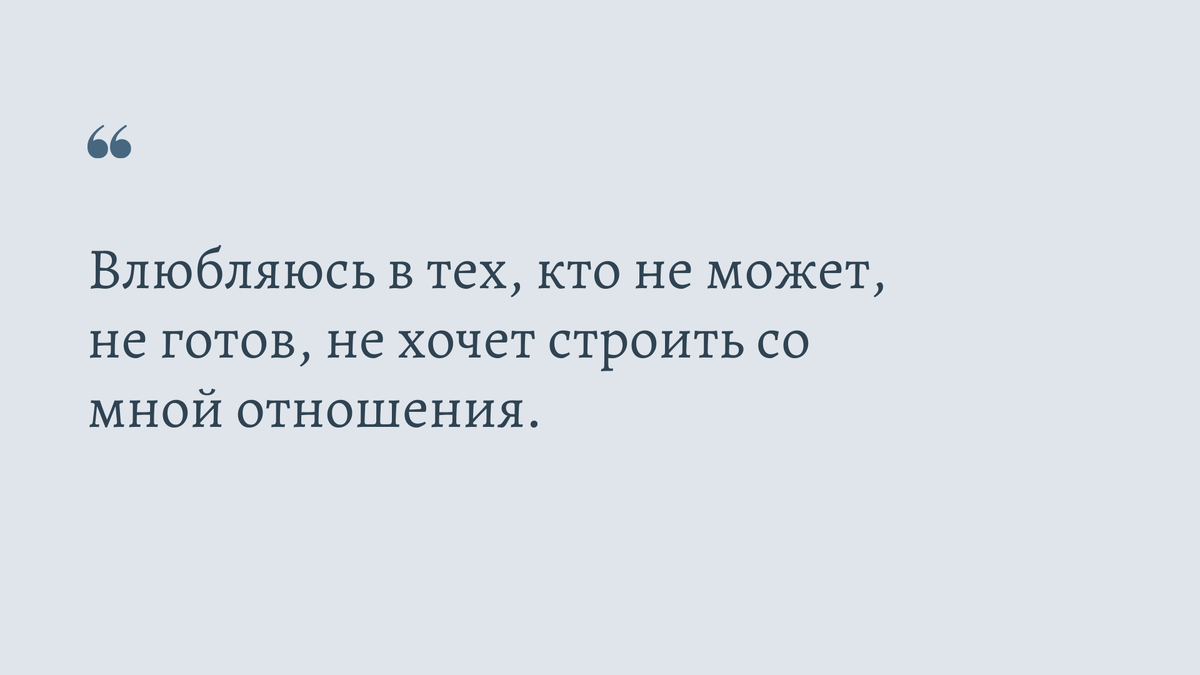 Я влюбляюсь, как было выше сказано, в тех, кто не может, не готов, не хочет строить со мной отношения. Те, кто был готов, не вызывали во мне в первую очередь желания. Физического я имею в виду. И я и готова бы признать, что тут проблема во мне, если бы не тот факт, что те, кто меня привлекают, как мне кажется объективно намного сексуален тех, кто не привлекает ) Могу даже фото приложить ))) можно сказать что на вкус и цвет и тд, но тут такие критерии как есть пузо, стройное тело и тд. То есть довольно объективные на мой взгляд все таки.