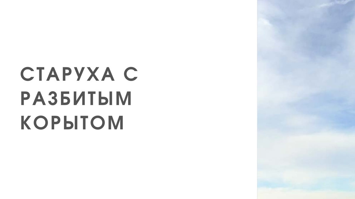 Александр Пушкин создал литературный образ вечно недовольной старухи с разбитым корытом. Этот образ символизирует неудовлетворенность, а точнее человека, которому сколько не давай любви, ему всегда будет мало, потому что внутри у него огромная пустота, которую невозможно ничем заполнить. Старуха с разбитым корытом как бездонная бочка, которую сколько не заполняй всегда остается пустой. Сколько не давай ей любви и ресурсов ей всегда будет недостаточно и всегда все будет «не то». Когда старик выпросил дом, старуха не радовалась и не благодарила, а сразу же просила, что-то получше. Подобные люди всегда найдут повод из-за чего быть недовольными. В связи с этим старуха с разбитым корытом прибывает в вечных сомнениях: «Вроде старик старается, но другой мог бы стараться и лучше». Старуха с разбитым корытом склонна проявлять чрезмерный эгоизм и жадность. Ее девиз по жизни: «Все мне и все для меня». Подобной паникой компенсируется отсутствие подлинной любви к себе. Она заменяется чрезмерным эго