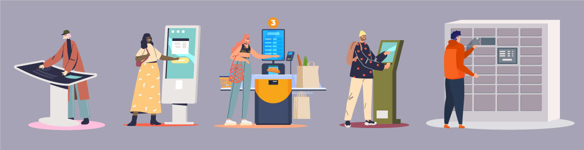 Любое устройство, которое позволяет клиенту получить услугу без участия человека, можно считать аппаратом самообслуживания. Но некоторые из устройств более популярны и обладают определенными похожими функциями. Например, киоски самообслуживания в ресторанах быстрого питания. Их объединяет крупный сенсорный монитор 32" дюйма, печать чека и оплата банковской картой.
