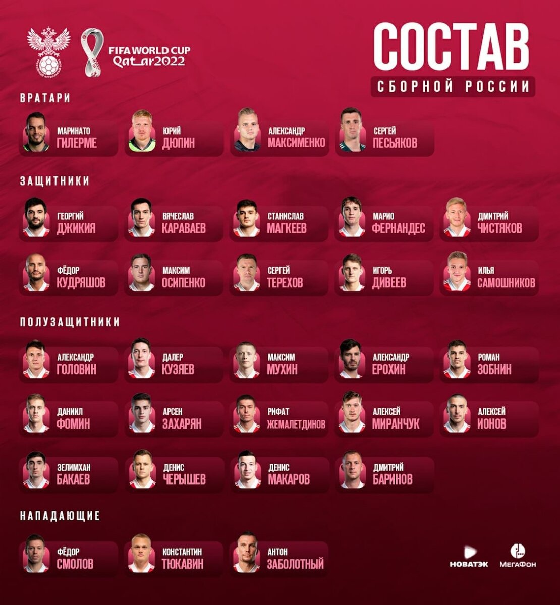 Тренерский штаб сборной России по футболу объявил состав на предстоящие матчи отбора к ЧМ-2022 в Катаре — в сборной нет Дзюбы и Соболева! «Они не в лучшей форме. Чтобы играть в сборной, сначала нужно играть за свой клуб» — заявил главный тренер сборной Валерий Карпин.