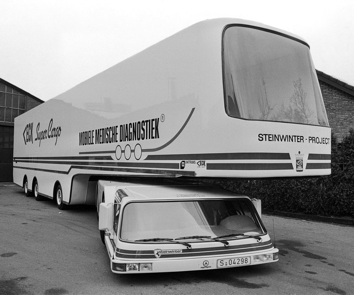 Инженеры всегда стремились разработать передовые революционные технологии, которые изменили бы мир. Именно с этими мыслями в 1983 году был представлен тягач Steinwinter Supercargo 20.40, который сам мог поместиться под полуприцеп. Впечатляющая концептуальная модель привлекла внимание, но не имела шансов прижиться. Почему? Многие современные тягачи и грузовики очень похожи друг на друга - эксклюзивный дизайн вряд ли заинтересует крупных производителей. И Steinwinter 20.40 действительно был разработан, чтобы не привлекать внимания, но вышло наоборот. Компания Steinwinter была основана в Штутгарте в 1969 году. Она разработала конкретные автомобили. Amigo, например, был багги на базе Fiat, а Junior 50 был молодежным автомобилем с одноцилиндровым двигателем объемом 50 кубических сантиметров. Но, пожалуй, самой впечатляющей работой Steinwinter был концепт тягача 20.40, который покорил мир еще в 1983 году на Франкфуртском автосалоне. Идея Steinwinter 20.40 заключалась в увеличении грузового о