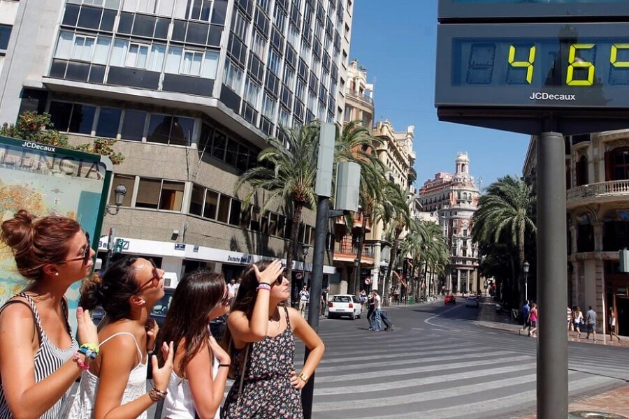 Жители Испании и ее гости на протяжении последних четырех дней изнывают от аномальной жары. Столбик термометра на большей территории страны перешагнул отметку в 36 градусов. Подобная температура установилась в центре и южных регионах Испании, а также долине Эбро. С 11 августа жара пришла и в северные регионы страны. В андалусском муниципалитете Монторо зафиксировали новый рекорд. Воздух здесь прогрелся до +47,2 °С. Люди устали от жаркой погоды, сохраняющейся даже в ночные часы. В социальных сетях и местных изданиях появляются фотографии, на которых запечатлено, как люди пытаются охладиться в брызгах фонтана. Хотя, немногие отваживаются выйти на улицу в такую жару, сопровождаемую атмосферной аномалией – в воздухе появляются взвешенные частицы пыли. К тому же в Испании складывается пожароопасная обстановка. Туристы комментируют: «В испанской столице закрыли въезд на автомобилях на гору Тибидабо». В правительстве Испании заявили, что деревья сухие. А туристы, которые могут спровоцировать
