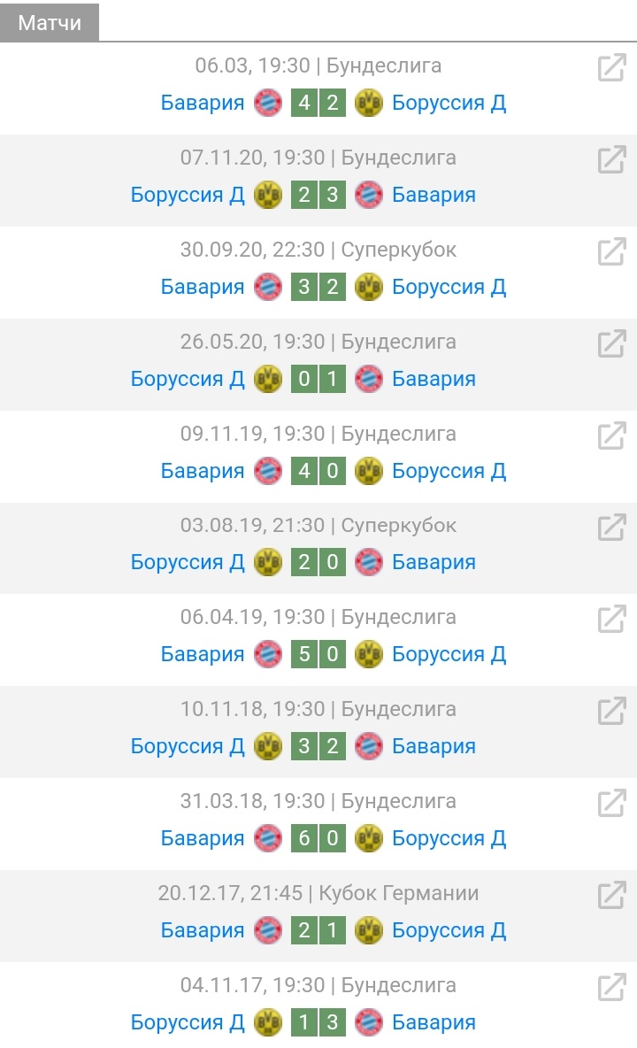 Матч за Суперкубок Германии между «Боруссией» Дортмунд и «Баварией» состоится 17 августа. Матч состоится на поле "Боруссия" - это хуже для "Баварии" В последних очных встречах Бавария на 100% выигрывала на своём поле, но на поле соперника она либо проигрывала,либо выигрывала в отрыв один гол (коротко 50/50 матч, если ставить на Победу) Бор 0:1 Бав, Бор 2:3 Бав (на поле Дортмунд) Бав 4:2 Бор, Бав 3:2 Бор, Бав 4:0 Бор (на поле Мюнхен) По статистике у Боруссии среднее количество голов за матч = 1 гол У Баварии за матч = 2 гола В последних трёх матчах был счёт Бав 4:2 Бор (4 гола в первом тайме) Бор 2:3 Бав (2 гола в первом тайме) Бав 3:2 Бор (3 гола за первый матч) Было бы это на поле Баварии, я бы не думая ставил на победу и тотал больше 2,5 и Индивидуальный тотал Баварии больше 2 И тотал больше 1 в первом тайме Вывод: 1) Ставим на тотал больше 2 2) Индивидуальный тотал Баварии больше 1,5 3) Обе забьют - Да. На победу рекомендуется не ставить. И вообще не рекоменду