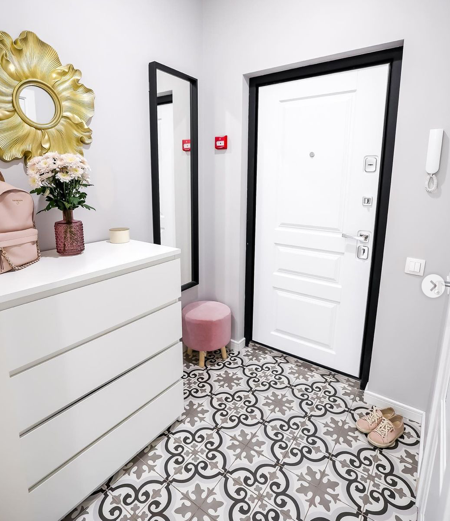 Доброго времени суток дорогие друзья! В этой статье поговорим о интерьере. Как вы относитесь к чёрно-белым тонам? На мой взгляд холодные тона вызывают положительные эмоции и очень красивы сами по себе. Серые стены пожалуй самые популярные после белых, но оттенков серого такое множество, что можно легко ошибиться. Поэтому я подготовила для вас подробную статью с примерами интерьеров и номерами цвета краски. У нас в прихожей стены окрашены краской оттенока 1951. За три года я ни чуть не пожалела, что выбрала его, смотрите как он идеально подошёл к плитке на полу. Такой же оттенок до недавнего времени был у нас в детской. Как уже известно, там я сейчас делаю ремонт. Дайте мне сил его поскорее закончить. Важные моменты: Помните, что любой оттенок в большом объёме стене темнее, чем палитре на маленьком кусочке. Поэтому скорее всего вам подойдёт оттенок чуть светлее, чем тот, который вам понравился на палитре. Для выкрасов выбирайте 2-3 оттенка, чтобы уже дома на месте понять какой вариант п