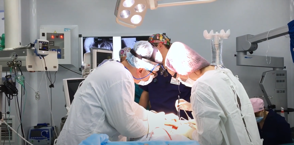 Сколиоз — искривление позвоночника в трех плоскостях. При патологии происходит ротация позвонков, меняется форма позвоночного столба. На теле становится заметной впадина с одной стороны и выпуклость (горб) с другой. Пациентам до 19 лет с искривлением менее 40 градусов сколиоз лечат консервативными методами. После 19 лет, когда прекращается рост костно-мышечных структур, если искривление позвоночника превышает 40-50 градусов, рекомендуется хирургическое лечение сколиоза. При такой деформации консервативные методы неэффективны. Операция при сколиозе проводится в несколько этапов: Степень травматичности операции, объем кровопотери, и длительность реабилитации зависит от нескольких факторов. Большую роль играет техника хирурга, используемые для операции инструменты, качество имплантов. Операция по устранению сколиотической деформации в центре ортопедии профессора Сампиева длится 2-3 часа, кровопотеря составляет 200-300 миллилитров. На следующий день после операции пациент встаёт, на 7-е