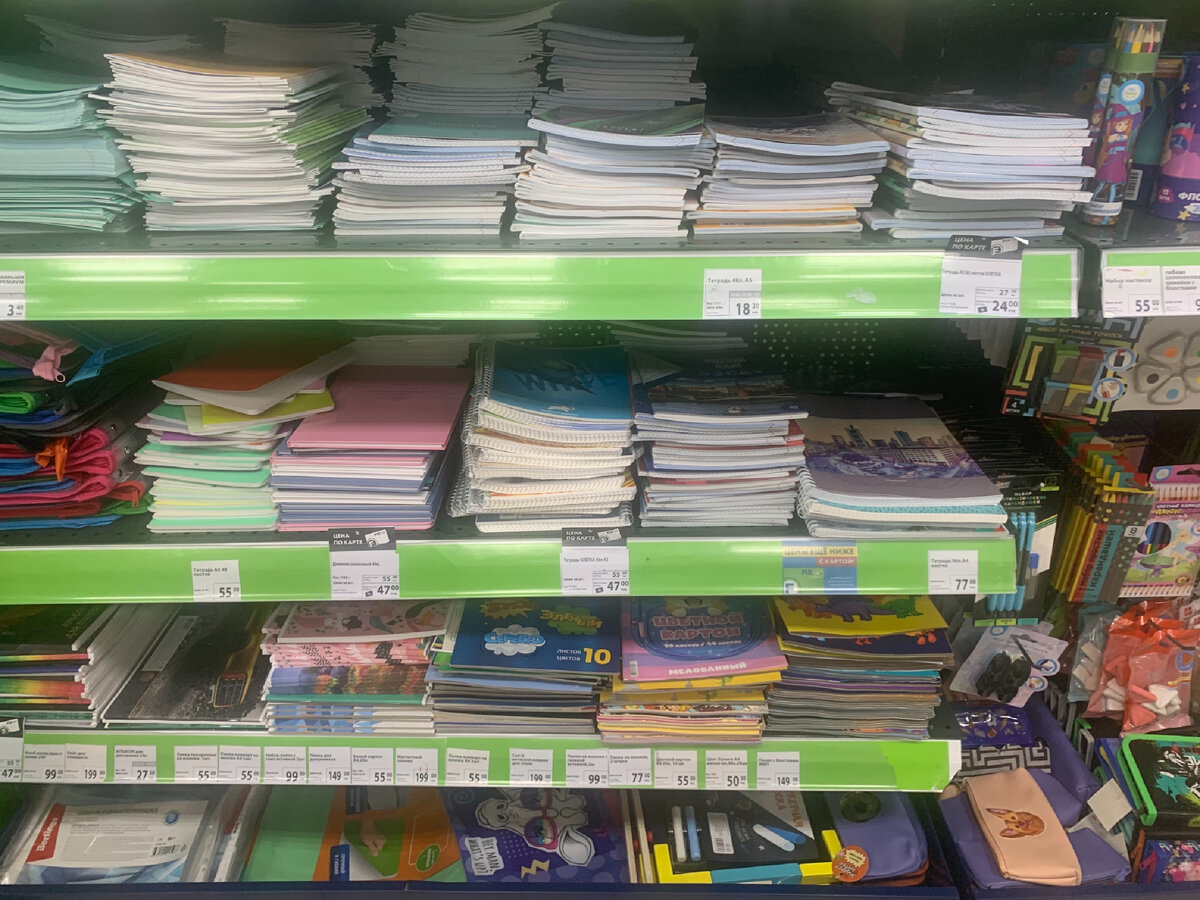 Всем привет! Я стал очень много ходить в фикс прайс и мне он очень понравился тем, что здесь появляется очень много новых товаров, маленькие цены ну и вообще место классное, а тут ещё и товары со школой. Осталось 2 недели до того, как ребёнок пойдёт в школу, именно поэтому уже сейчас нужно задумываться о покупке школьных принадлежностей, рюкзаков, школьной формы и т.п Я не нашел школьную форму в фикс прайсе, однако принадлежности тут как тут, так и ещё и дешевле, чем продают на большом складе, который специализируется для школы, что очень удивило. Давайте покажу товары: Тетради. Там где я брал тетради (18л) стоили вроде в районе 20 рублей, здесь 3.. Ну ладно, здесь 12 листов, но 3 рубля это очень круто для таких тетрадей. Тетрадь 48 листов стоит 18 рублей, хотя везде по 40-60 и это правда.. знаете мне сейчас как обидно писать эту статью, так как я уже все купил детям по полному прайсу, а тут они почти ничего не стоят.. 80 лисов стоит 24 рубля. Берите их для школы, так как они не будут