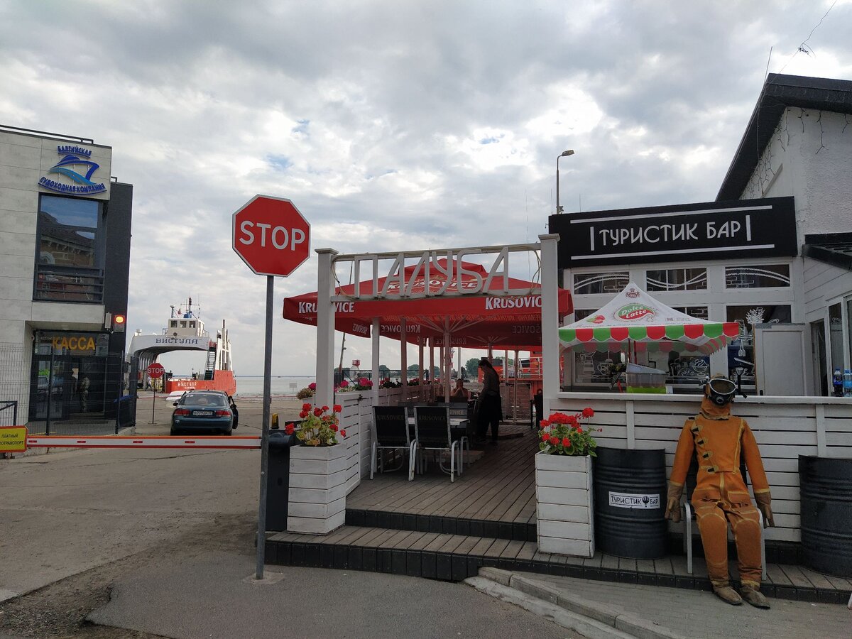 Конечно же, как и все в Балтийске :) Про эксплуатацию «самого западного» мне есть что сказать, впрочем — отличный же бренд, так что пусть расцветают все цветы! Кафе это нашли случайно, хотя за годы понаездов в Балтийск проезжали мимо него на машине и проходили пешком неоднократно! Оно расположено прямо на пристани, с которой уходят паромы на Балтийскую Косу. Старенькие «Нида» и «Вистула» по очереди каждый час перевозят на Косу и обратно людей и машины, так что движением там то очень активное, то замирает. Легенда у кафе очень красивая — оно де сложено из кирпичей разобранного в 60-е годы «старого Пиллау». Ну да, это было известно всегда, «половина» Восточной Пруссии разобрана на кирпичи :( Для восстановления разрушенных советских городов, в том числе Ленинграда и Сталинграда. Очень символично! Но вот осталось немного кирпичиков и для себя! Естественно, в оформлении эксплуатируется тема Восточной Пруссии. Неплохие фотографии (вот что хорошо с довоенной историей Восточной Пруссии — сохр