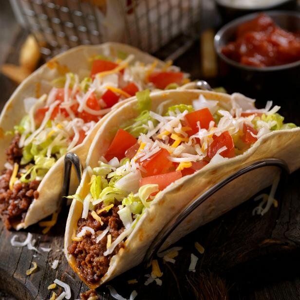 Сегодня мы расскажем о традиционной мексиканской кухне. Не станем утомлять читателей сложными рецептами, а предложим простой, но вкусный рецепт такос с говядиной. Такос (или тако), закуска с разными наполнителями, родом из Мексики. Она представляет собой тонкие кукурузные или пшеничные лепешки (тортильяс), в которые кладут начинку и складывают пополам. Начинки могут быть разные, но в основном это горячий говяжий фарш с перцем и зеленью. Еще до прихода европейцев в Мексике уже существовали различные рецепты этой закуски. Коренные жители, проживающие рядом с озёрами ели тако с рыбой. В некоторых словарях тако означает «тортилья, заполненная мясом». Ингредиенты (основные) Ингредиенты (для сервировки) Приготовление
