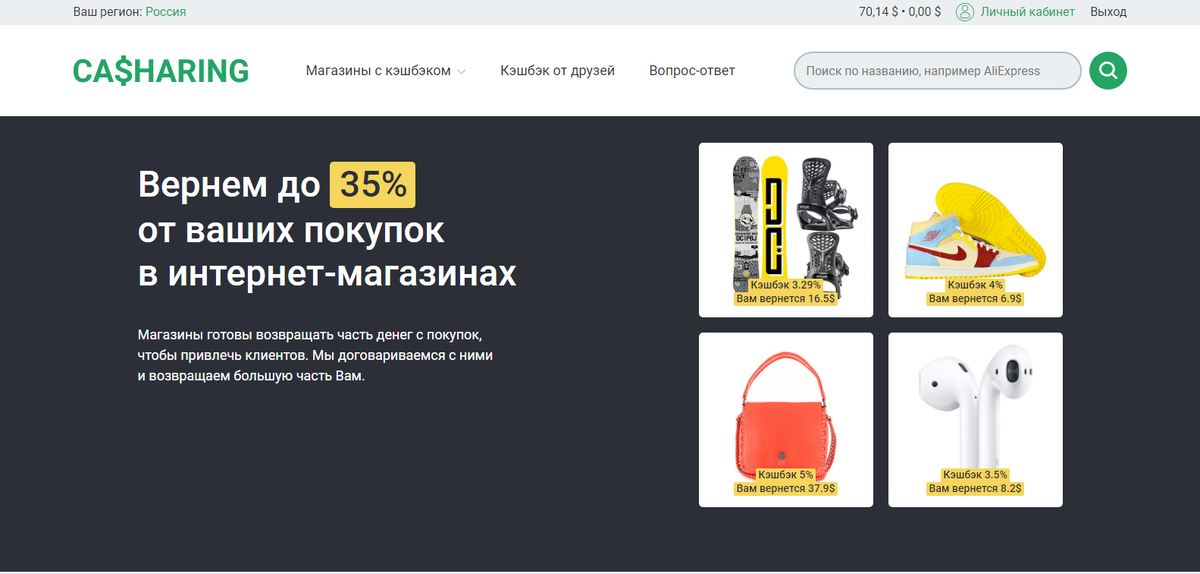 Эта статья подойдет тем у кого хорошая кредитная история или есть друзья с хорошей к.и. Обычно происходит так: человек берет микрозаим и платит проценты МФО, но у нас будет все наоборот. Мы возьмем займ за который не придется платить и дополнительно получим кэшбэк. В наше время количество конкурентов растет очень быстро и поэтому люди у которых есть свой бизнес прибегают к различным методам привлечения клиентов. Микрофинансовые организации готовы платить хорошие деньги за привлеченных людей. Этим мы и воспользуемся. Сервис Casharing (Ссылка для регистрации) - собрал несколько микрозаймовых компаний, в которых можно получить кэшбэк за займ. Обратите внимание на то что займ нужно брать в той компании где есть акция "Первый займ под 0%", в противном случае проценты по займу могут обойтись дороже полученного кэшбэка Здесь также можно получать кэшбэк за покупки в магазинах, услуги и даже путевки. Как видите сумма кэшбэка зависит от суммы займа и вашей к.и. И так по порядку: 1. Регистрир
