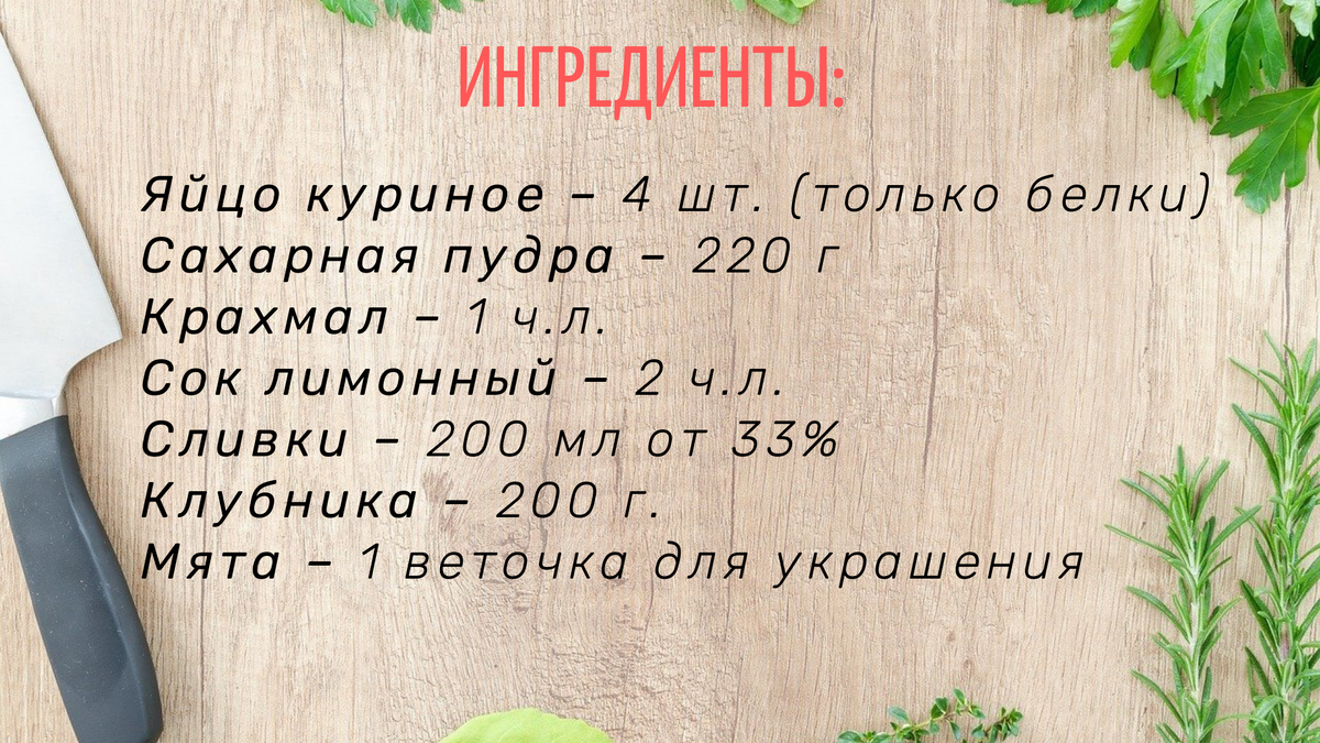 ⏰ Общ.\актив. время готовки: 3 часа\30 минут 🍴 Количество порций: 8 порций ✳ Калорийность (100g):173 ккал 💰Стоимость: очень экономно Этот воздушный десерт один из любимых в нашей семье. Очень нежный, ароматный торт-безе покорит каждого своей красой и вкусом. Приготовление: В рецепте взяты яйца категории С0, вес всех белков – 150 г. Сахарную пудру можно заменить на мелкий сахар. Но если выбирать, то сахарная пудра выигрывает, так как сахар в готовке не всегда успевает растворится в белках. Смелите сахар в кофемолке, просейте его и сахарная пудра готова. Крахмал можете брать любой на выбор: картофельный, кукурузный. Если Вы берёте сахар, то потребуется ещё 1 ч. ст. крахмала, так как в покупной сахарной пудре часто содержится крахмал. Сливки возьмите жирные, чем жирнее, тем лучше. Перед взбиванием сливки охладите, поставив их на 10-12 минут в морозилку. Ягоды можно использовать самые разные - малину, голубику, чернику и т.д. Из фруктов лучше отдать предпочтение мягким плодам - бананам,