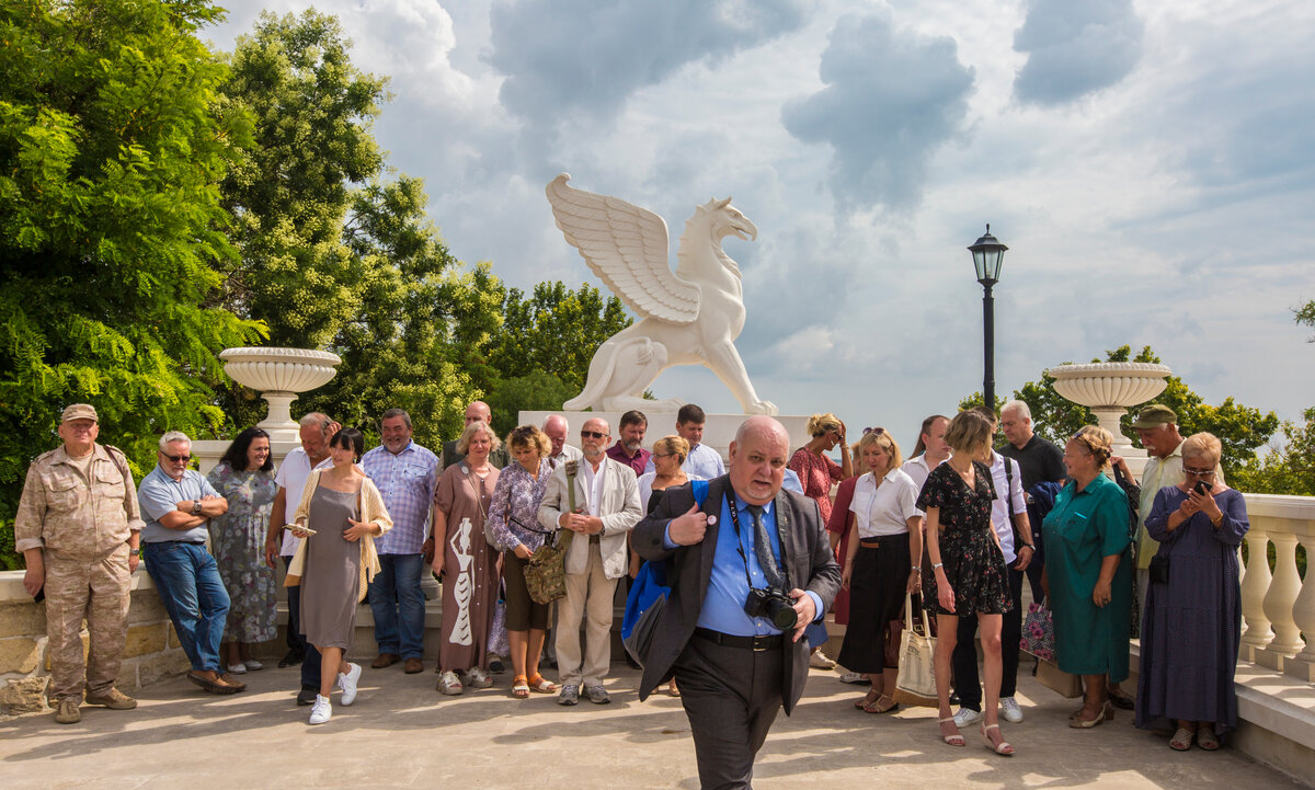 КЕРЧЕНСКОМУ МУЗЕЮ ДРЕВНОСТЕЙ - 195 ЛЕТ! Фотоальбом - 2. Август выделил историкам и археологам страны буквально два "солнечных" дня на проведение Международной научно-практической конференции "Археология и история Боспора", посвящённой 195-летию Керченского музея древностей... И снова - потоп, снова - аврал, снова - невосполнимые потери, как для самих керчан и гостей Крыма, так и для объектов Восточно-Крымского историко-культурного музея-заповедника, ведь большинство из них - под открытым небом... Наша экскурсия по возрождённой, отреставрированной на средства ФЦП Большой Митридатской лестнице, завершилась, как только мы поднялись к ослепительно-белым грифонам, чтобы "сфоткаться на память". Вечером, на торжественном открытии конференции, министр культуры Крыма Арина Новосельская, не подходя близко к микрофону, самоиронично заметила, что керченские грифоны прославили её на всю страну... Зал поддержал министра культуры громкими аплодисментами... Так что, дорогие блогеры, приезжайте! У на