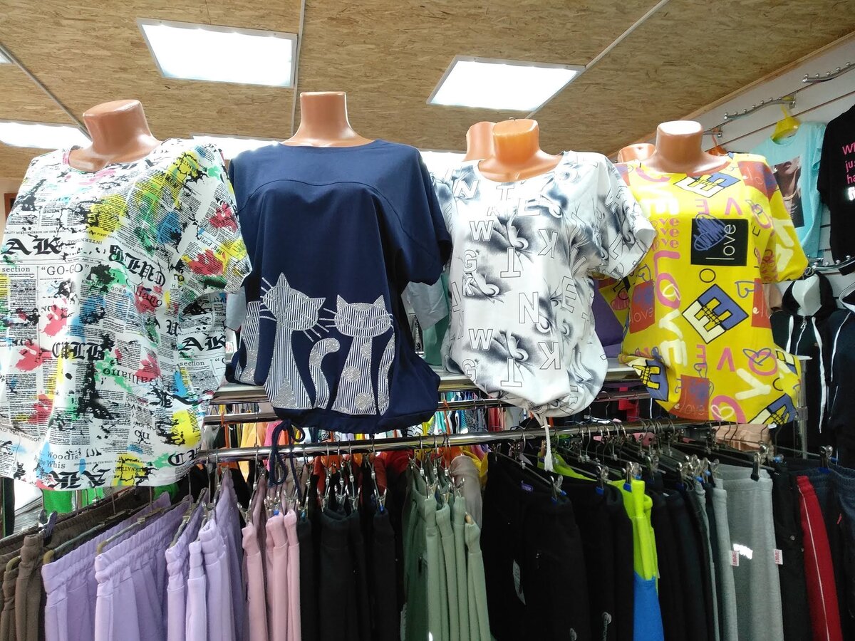 Давно я не писала о том, что продается в моем магазине. Про продажи через интернет— да, видео обзоры —да, а самая интересная тема, которая и дала жизнь моему каналу, и что греха таить, многим другим каналам ИПэшников, указав на то, что интересно читателям в первую очередь—нет. Почему не пишу? Да как-то не о чем. Вот листала недавно свои статьи за прошлый год, так в это время я на рынках уже вовсю торговала спортивными костюмами. А в этом году вчера был продан первый. И торговля такая, что неделю в магазине, можно приравнять дню на рынке. Ну отчёт, так отчёт. Начну с субботы, но не прошедшей, а с 7 августа. Суббота Продалась футболка с кошками, из всего, что вы видите на фото, она была последней. Что хочу сказать: фирма хорошая, в следующем сезоне буду с ней работать. Продалась белая блузка, и из пяти осталась одна Продались две рубашки в клетку, цвет не помню. Всё, на этом субботние продажи закончились. Но помимо прочего, я продала два костюма, которые покупались на деньги сына, стало