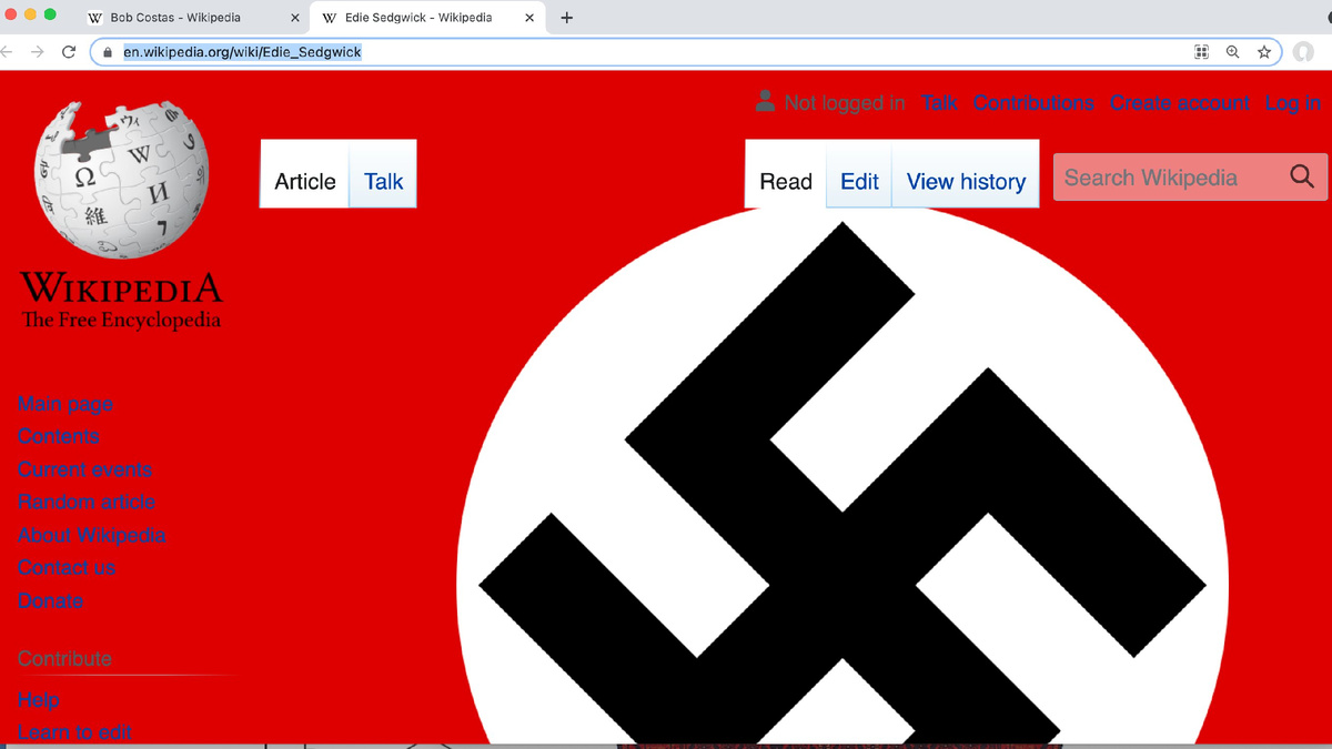 Тысячи страниц Википедии испорчены гигантскими свастиками