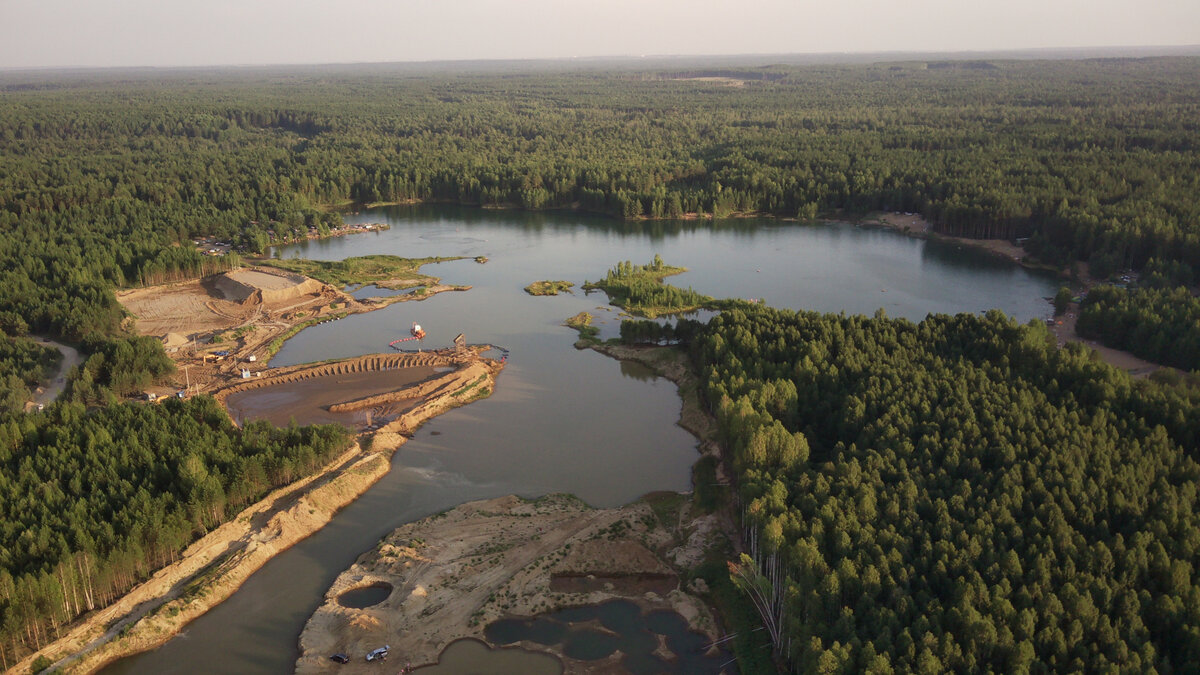 Затопленные песчаные карьеры, пляж и странные круги в карьере