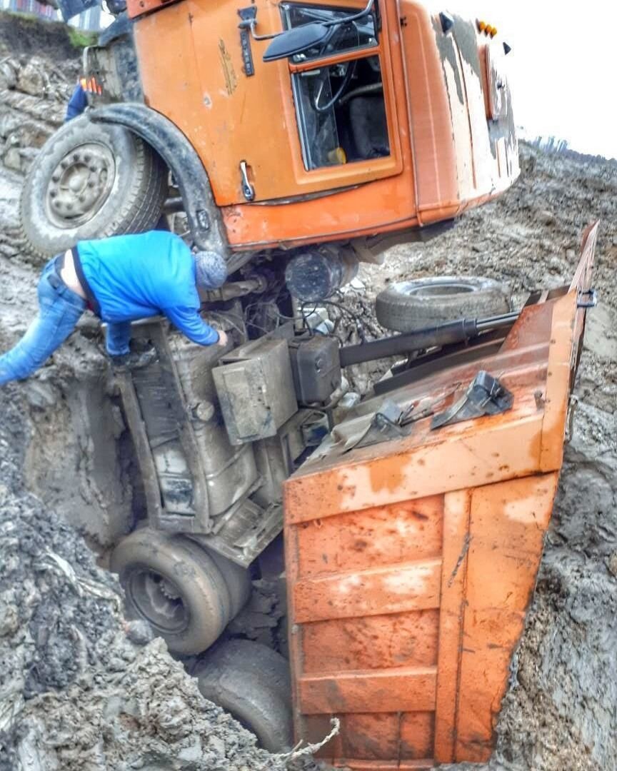 Сегодня вас ждёт новая порция фотографий и видео про необычные ситуации, в которые попадают водители грузовиков. Давайте посмотрим вместе! Не забывайте также посмотреть предыдущую часть >> Начнём сегодня вот с этого бедняги. Этот самосвал КамАЗ, судя по всему, приехал на разгрузку. Он должен был остановиться на краю ямы и высыпать то, что привёз. Но проливные дожди, которые прошли накануне, сделали глину очень скользкой. В итоге водитель просто ничего не мог сделать: грузовик заскользил задним ходом и провалился в яму. Мне вот интересно, как его теперь отсюда вытаскивать? Не думаю, что получится просто потянуть другим грузовиком. Все мы любим советские грузовики за их потрясающий шарм. В России их осталось очень мало, но в Казахстане ГАЗики и ЗИЛы продолжают эксплуатировать и часто содержат в отличном состоянии. Правда и работать им приходится на всю катушку. Посмотрите, как этот ГАЗ-53, нагруженный тюками сена, с трудом проезжает через ворота. Как думаете, во сколько раз водитель пре