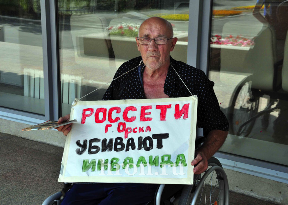 Орчанин Вячеслав Колобов в очередной раз устроил в центре города одиночный пикет. На этот раз на инвалидной коляске он подъехал сразу к зданию муниципалитета. Причина для проведения акции была веской: у него в доме отключили электроэнергию якобы за неуплату. По словам Вячеслава Колобова, 10 августа этого года к его дому прибыли представители ресурсоснабжающей организации с намерением ограничить подачу электроснабжения. Мужчина поинтересовался, на каком основании. Ему ответили: – У Вас долг в размере 2,4 тысячи рублей. – Откуда он взялся, неизвестно, – рассказывает Вячеслав Николаевич. – Я человек советской закалки, поэтому все свои расходы записываю, да и квитанции об оплате коммунальных услуг храню долго. У меня задолженности не может быть, я добросовестный плательщик, плачу по показаниям счетчика. Но тут речь даже не о долгах, а о том, что мне незаконно отключили электричество, лишив возможности жить в нормальных условиях. Когда в 14 часов 30 минут энергетики все-таки отрезали свет в
