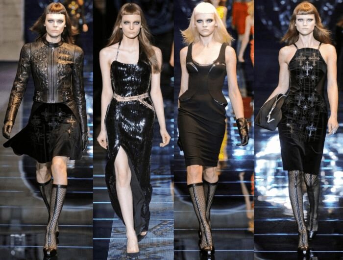 Это стиль уверенной в себе женщины, дерзкой роковой красавицы достаточно провокационный и сексуальный, появился он в начале прошлого столетия с появлением кинематографа. Основа гардероба - прилегающие силуэты, выгодно подчеркивающие все достоинства стройной фигуры, пышкам сложно подобрать одежду в этом стиле. Маленькое черное платье можно взять за основу образа. Открытые плечи, глубокие декольте, максимально допустимые разрезы, полупрозрачные блузки, обтягивающие брюки - основные детали этого стиля. Уместно использовать анимационные принты хищников - леопардовый, тигриный или рептилий как в одежде так и в аксессуарах - сумочках и обуви. Декорируют образ драпировками, кружевами, шлейфами, стразами и кристаллами, жемчугом, перьями. Особое предпочтение отдается палантинам, шалям, длинным перчаткам, горжеткам, корсетам, чулкам и подвязкам. Цвета экспрессивные, глубокие, насыщенные - алый, черный, бордо, темно зеленый, глубокий фиолетовый, насыщенный синий. Ткани - дорогие, натуральные -