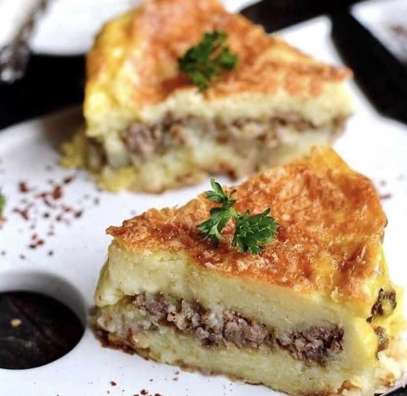 - Когда фарш слегка остынет, вбить яйцо и хорошенько перемешать Смазать форму для выпекания сливочным маслом. Выложить слой пюре, сверху фарш и сверху пюре