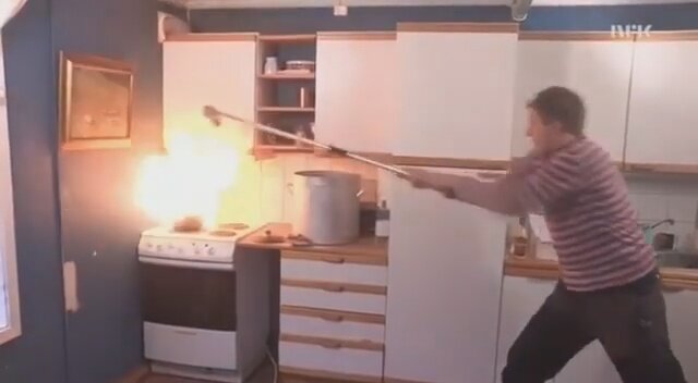 Почему нельзя тушить горящее на сковороде мacло водой вы увидите в этом коротком видео.