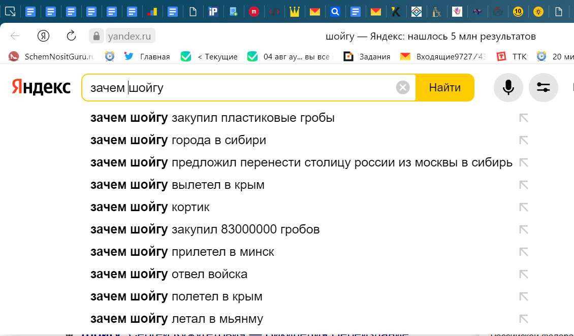 Зачем Сергей Кожугедович делает те или иные вещи, волнует многих. Стоит только залезть в поисковик и можно увидеть следующее: Вот и к нам, в Новосибирск, он зачем-то приезжал, проехал по городу аж на семи машинах с мигалками и изрек странную идею - Нужно строить в Сибири новые города миллионники! Кстати, вот здесь любопытная статья о доходах Шойгу Зачем?Почему? Какая цель? - перечитала много, ответа не увидела. Или это единственная идея, пришедшая к нему перед выборами? Или просто плохую речь для него кто-то написал? Я не против новых городов. Я вообще за любую движуху, кроме голодовки) Но у меня есть ряд вопросов, и главный из них: Кто будет заниматься имеющимися городами? Я понимаю, что проехав по лучшим улицам города кортежем, можно не заметить плачевного состояния Новосибирска. А оно именно такое, я ответственно заявляю, как коренной житель. Городом никто не занимаются, он никому не нужен. Власти либо совсем бездарны, либо заняты своими делами, что хуже - не знаю. пробки…. Хорош