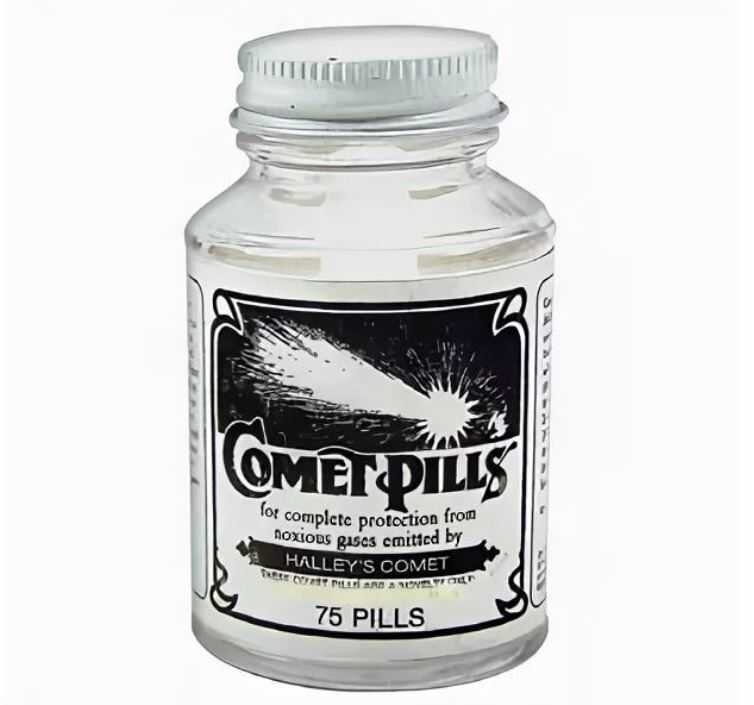Мошенники и космос! Когда комета Галлея приблизилась к Земле 6 мая 1910 года, король Англии Эдуард VII умер. Суеверные ахнули и схватились за головы, ибо наверняка комета принесла смерть их королю. В то время как французы обвиняли комету в наводнении Сены. Британцы восприняли пролет кометы как знак того, что немцы скоро вторгнутся в границы их страны. Комета должна была пролететь мимо Земли 19 мая 1910 года. Несколькими месяцами ранее астроном Камиль Фламмарион предположил, что в хвосте Галлея есть цианоген. Который проникнет в атмосферу и убьет все живое на планете. Хотя большинство астрономов с этим не согласились, последовала паника. Естественно, мошенники в полной мере воспользовались этой возможностью. И начали продавать нервной публике очень странные «таблетки от комет». Двое мужчин из Техаса были пойманы на продаже сахарных пилюль по смехотворным ценам. Хотя они были арестованы, вскоре после того, как их клиенты начали беспорядки, их отпустили. Помимо огромного спроса на эти «та