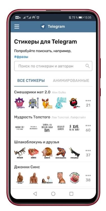 У Telegram нет ни библиотеки, ни поиска. Есть только один способ находить нормальные стикеры - шариться по чатам. Но есть лайфхак - сервис Tlgrm. Это библиотека стикеров с удобным поиском и каталогом. В этой статья я расскажу вам как этим пользоваться. Пошаговая инструкция: 1. Заходим на сайт - Tlgrm 2. В строке поиска просто вбиваем ключевые слова или имя автора стикеров. Также можно выбирать из предложенных списков. 3. Находим нужные, нажимаем на них, а затем кликаем кнопку "Добавить в Telegram". 4. Система автоматически перенаправит нас в приложение, остаётся нажать на кнопку "Добавить стикеры" Спасибо, что дочитали до этого момента. Пожалуйста, поддержите этот канал лайком и добротным комментом. Чем выше активность, тем чаще будут новые лайфхаки;)