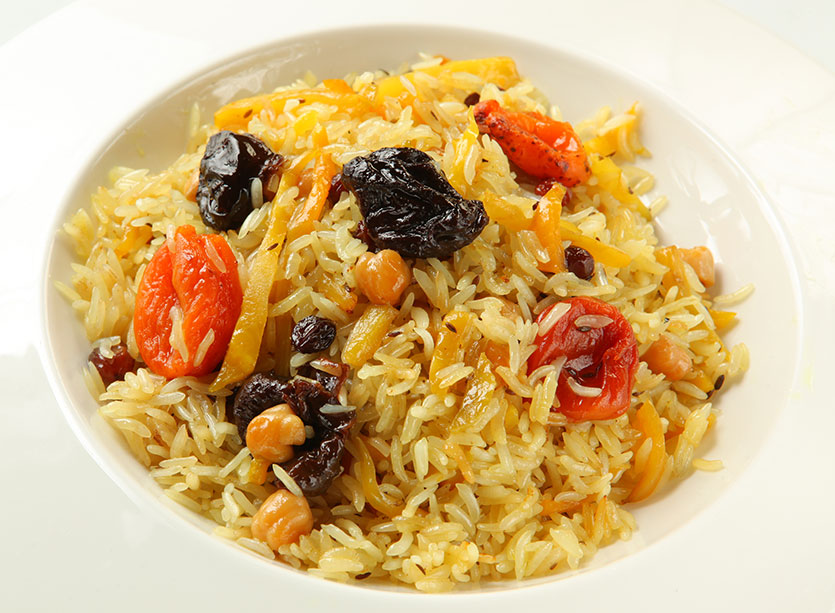 Приготовить сладкий плов очень просто. А вкус у него просто замечательный. Вам понадобится : 1.5 стакана риса "Басмати" 4 стакана воды 100 гр изюма 150 гр кураги 1 ч ложка барбариса 1 ст ложка мёда 1 апельсин 20 гр оливкового масла 30 гр сливочного 20 гр кунжутного(если нет, то оливкового) соль Приготовление : 1) Промыть хорошо рис и сварить его в воде, с расчётом 1 стакан риса = 2 стакана воды, не забыть подсолить воду, можно его чуть-чуть не доготовить . 2) Сухофрукты промыть, курагу разделить на 4 части, разогреть казан или кастрюлю вместе с маслом. Добавить изюм, курагу и барбарис и пол стакана воды, прижарить до золотисто-коричневого цвета на кураге(примерно 10 минут). добавить ложку меда и прижаривать еще 5 минут, затем выжить сок целого апельсина и натереть совсем немного его цедры. тушить еще 2 минуты. 3) При подаче в рисе сделать углубление и в него складывать начинку, а края обильно сдабривать медовым сиропом. Приятного аппетита!