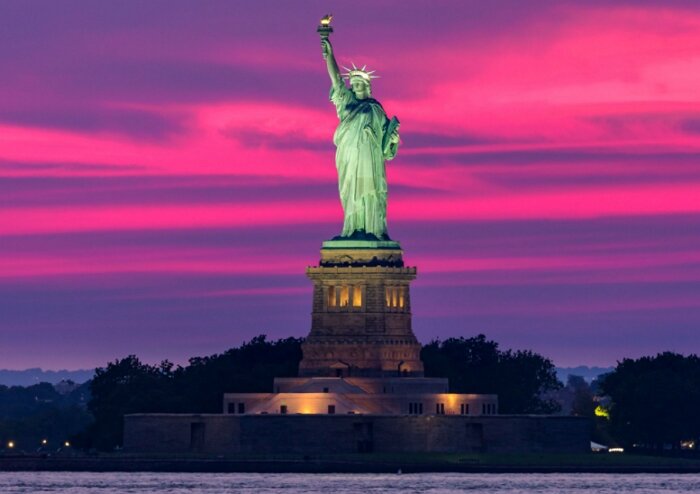 Статуя Свободы является главным символом Соединенных Штатов Америки. Находиться она на небольшом островке рядом с Манхэттеном. Так же The Statue of Liberty – входит в список самых знаменитых достопримечательностей во всем мире, и не обращая внимания на то, что ей уже почти 130 лет - выглядит она прекрасно! История Скульптура является подарком Франции к Всемирной выставке 1876 года и столетию американской независимости. У статуи в правой руке находиться факел а в левой скрижаль. Надпись на скрижали гласит: JULY IV MDCCLXXVI - 4 июля 1776, это день принятия Декларации независимости США. Одной ногой «свобода» стоит на разбитых оковах. 356 ступеней к свободе не просто фраза, именно столько ступеней необходимо преодолеть чтоб добраться до кроны, или 192 ступени к пьедесталу. Так же на статуи есть вторая надпись, внизу у основания. На металлической табличке отлит сонет американской поэтессы по имени Эмма Лазарус. В 1883 году поэтесса написала сонет The New Colossus. И только через 10 лет,