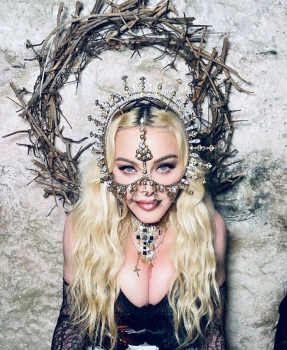 Камни в тот день, кстати, украшали не только Мадонну, но и ее праздничный торт в форме гигантского креста: певица сфотографировалась рядом с ним, и разглядеть огромные драгоценности (все же бутафорские) не составило никакого труда.