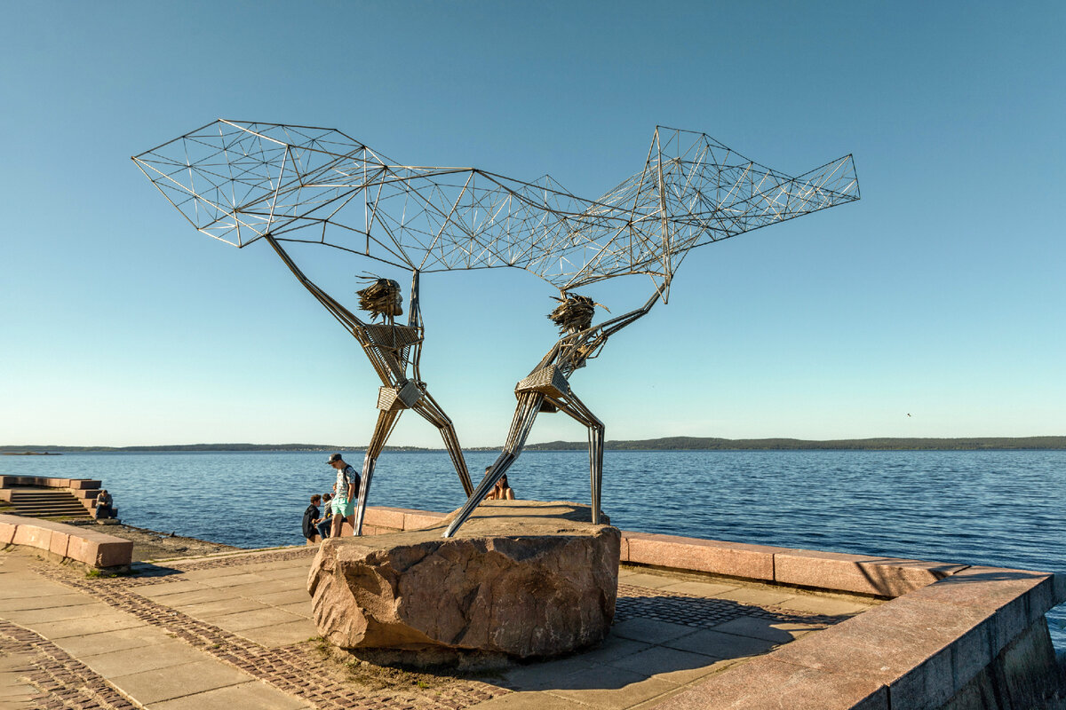 Самым грандиозным, на мой взгляд, является памятник «Онего» («Рождение Петрозаводска»). Эта красивая скульптура – подарок от Ленинградской области, приуроченный к празднованию 300-летнего юбилея города. Его создатели хотели выразить идею возникновения города Петрозаводска как форпоста на Северо-Западе страны.