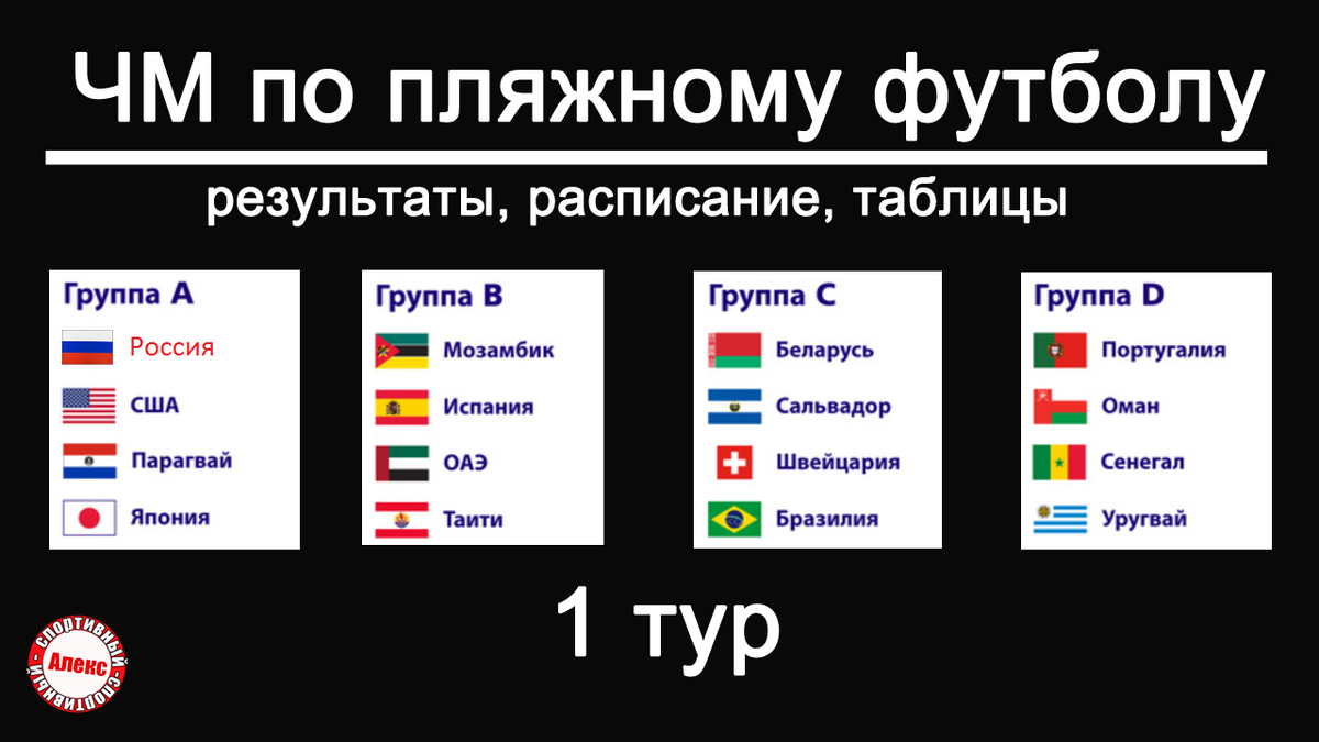 Пляжный футбол. Чемпионат мира 2021. 1 тур. Таблицы, результаты, расписание.