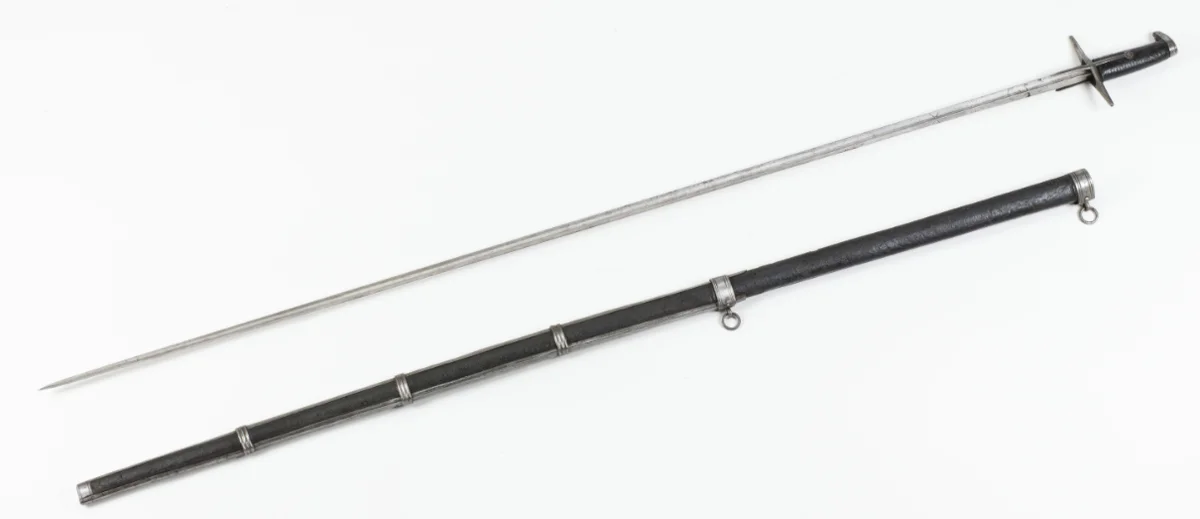 У него крайне примечательный эфес - прямая симметричная рукоять, крупное сферическое навершие и... Прорезная дисковидная гарда, которую некоторые из моих читателей уже успели сравнить с японской цубой.