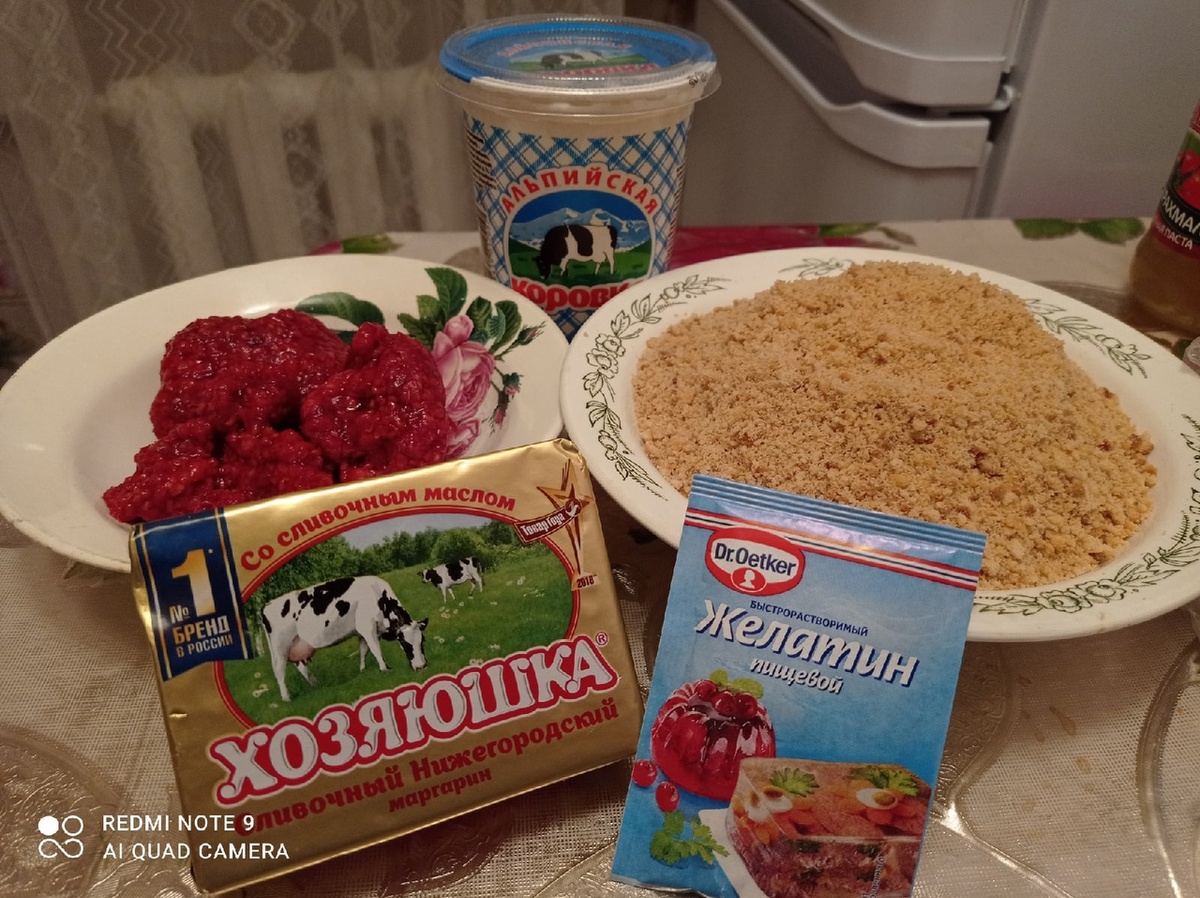 Я поделюсь с Вами рецептом чизкейка, который можно приготовить из продуктов, которые легко можно найти в магазине, требует совсем немного Вашего времени, а главное – ВСЕГДА получается. Ингредиенты: Печенье ("Юбилейное" или т.п.) - 400г Масло сливочное - 150 г Ванилин - по вкусу Малина (можно заменить любой другой ягодой или фруктом) - 200г Сметана (20% жирности) - 250 г Сахар (по вкусу) - 2 ст. л. Способ приготовления: 1. Измельчаем печенье в крошку. 2. Растапливаем сливочное масло в микроволновой печи. 3.Пока масло остывает, застилаем дно формы пергаментной бумагой. 4. Вливаем растопленное сливочное масло в емкость с печеньем и тщательно перемешиваем ингредиенты. 5. Распределяем плотным слоем на дно формы диаметром 20 см и поставим в холодильник на полчаса. 6. Тем временем замачиваем желатин в холодной воде согласно инструкции. 7. К сметане добавляем желатин, малину и размешиваем. 8. Затем аккуратно распределяем получившееся желе по чизкейку и поставим охлаждаться. Готовый десерт