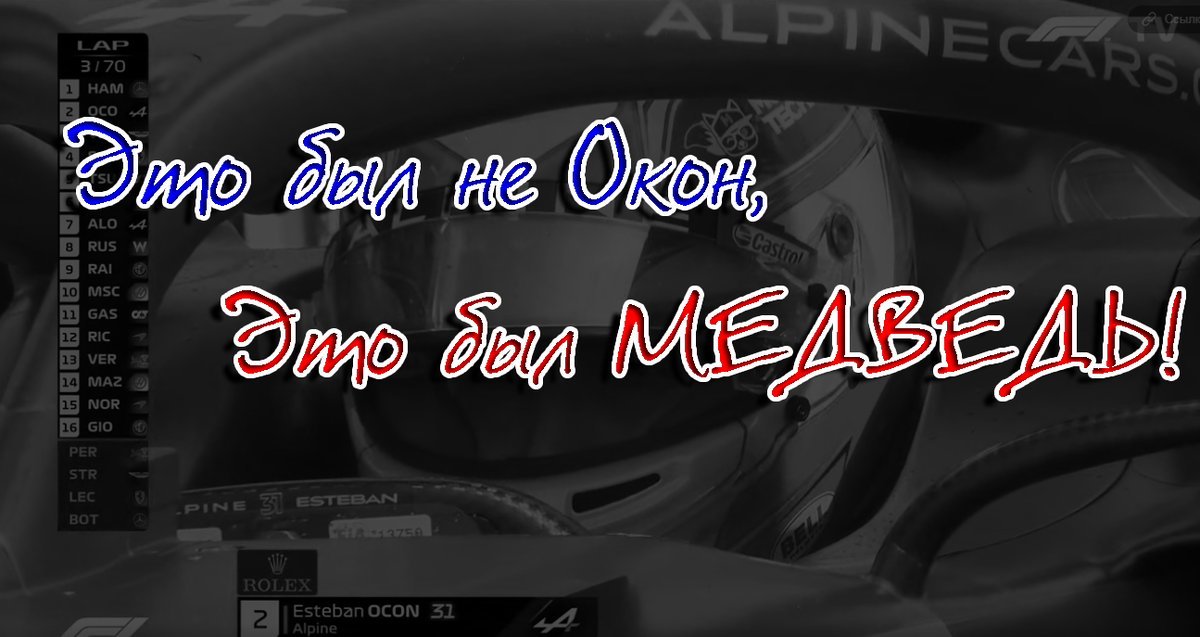 В-третьих, в Alpine всё-таки прокололись. На финише отчётливо видно как из-за спин инженеров французской команды видны заветные буквы: “KVY L”. Из всего выше сказанного я могу расшифровать это очень просто – Kvyat leads. С английского это можно перевести как “Квят лидирует”. А как мы знаем – фамилия Квят не сильно похожа на фамилию Окон. А значит – они что-то знали...