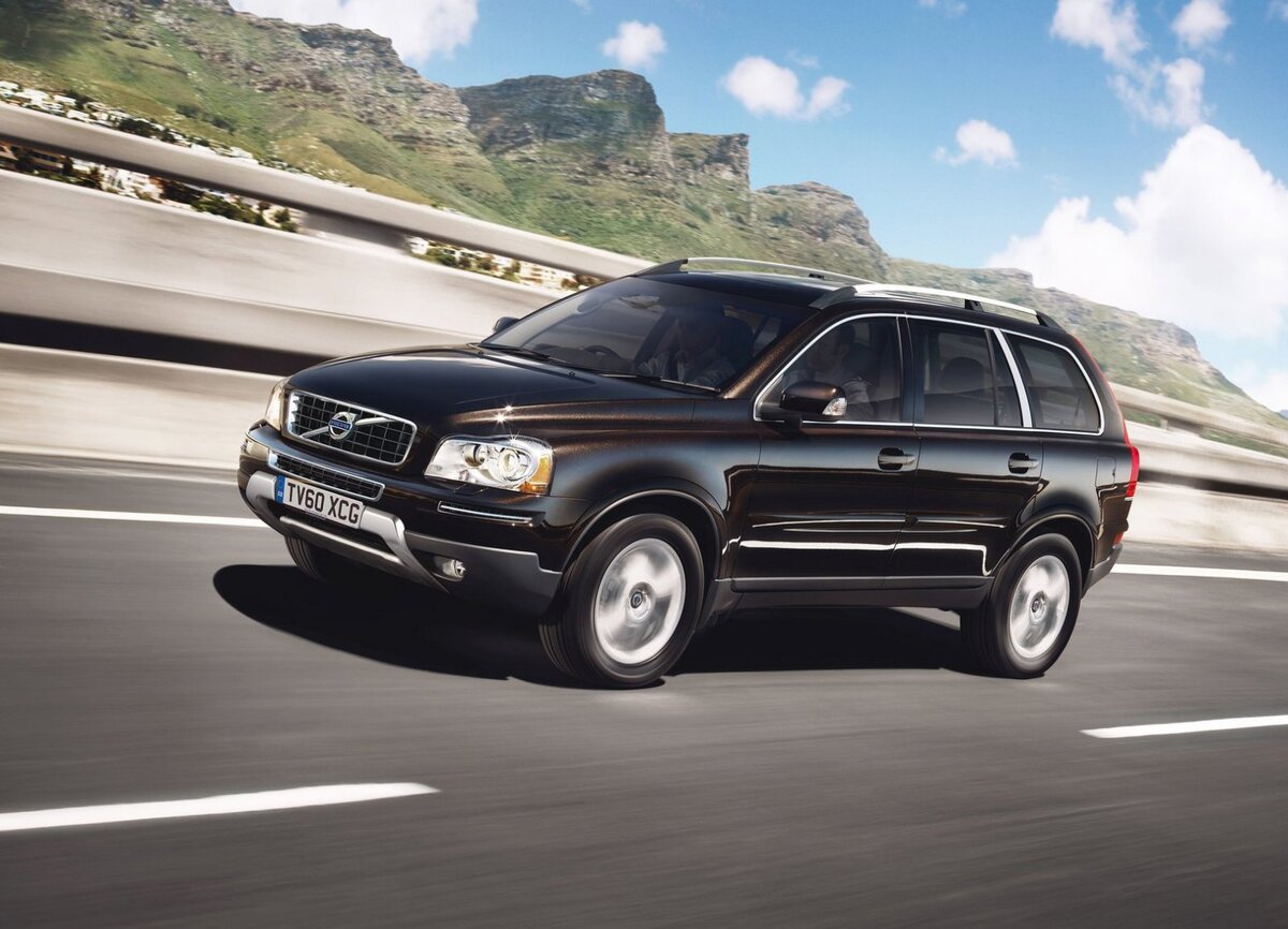 Volvo ХС90 создавался (как и Х5,) для рынка США, где он и дебютировал в 2002 году. В России официальные продажи начались в 2005 году, но первые автомобили были ввезены к нам в страну существенно раньше. Платформа P2, известная по крупным легковушкам Volvo, была разработана еще самостоятельно, до покупки компании Фордом. Под капотом изначально стояли 5-цилиндровые турбомоторы мощностью 210 л.с. и 2,9-литровый битурбомотор мощностью 272 л.с. (такие машины с шильдиком T6 поступали в Россию в основном из США). Несколько позже гамму двигателей дополнили атмосферный V8 объемом 4,4 литра мощностью 315 л.с., а также предназначенный для европейских покупателей 2,4-литровый 5-цилиндровый турбодизель мощностью 163 л.с. В 2007 году линейку дополнила бензиновая рядная «шестерка» SI6 мощностью 238 л.с. С ними агрегатировались автоматические гидромеханические коробки передач либо марки Aisin (5-ступенчатая AW55-50 и 6-ступенчатая TF-80SC), либо 4-ступенчатые коробки GM 4T65EV/GT, которыми оснащались