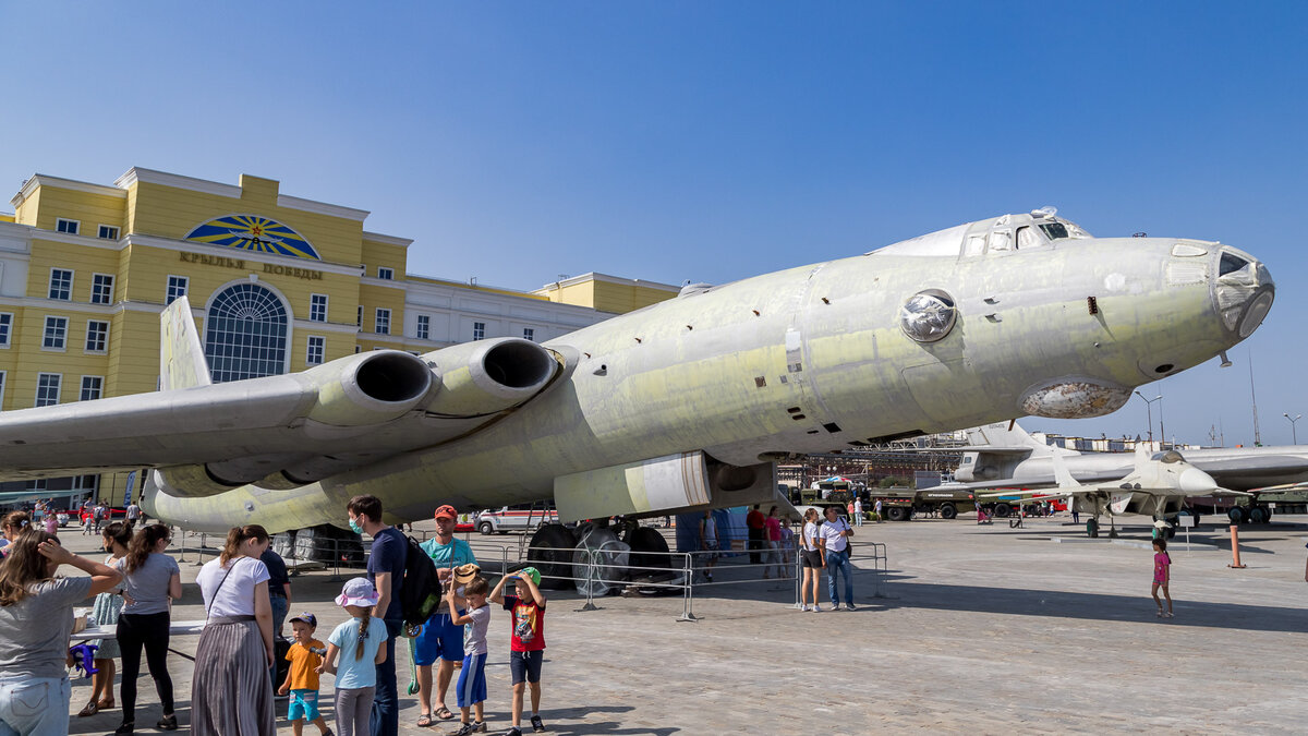 В минувшую субботу вновь посетил музейный комплекс УГМК в Верхней Пышме. За прошедшие пару месяцев есть изменения - собран самый большой по фактическим габаритам экспонат - бомбардировщик М-4. В этот день, на территории комплекса отмечался день ВВС и в анонсах праздника, организаторы обещали представить уже покрашеный М-4, но видимо немного не успели. Во время предыдущего посещения в июне, я его застал в разобранном виде, лежащим прямо на площади перед музеем. Ссылка на статью об этом будет в конце рассказа. Сейчас уже можно в полной мере осознать размеры этого великана - размах крыла 50,5 метров, длина самолета 47,6 метров. (листайте фото) У самолета еще не закрыты места соединения консоли крыла с центропланом, а кое где отсутствую и небольшие листы обшивки крыла. (листайте фото) Двигателей не будет и после покраски видимо установят заглушки. (листайте фото). В хвостовой части была установлена авиационная пушка калибра 23-мм. АМ-23. В месте крепления хвостового оперения и киля, тож