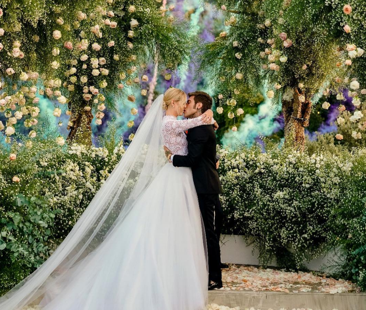 Бизнесвумен и модный инфлюенсер Кьяра Ферраньи одна из первых задала тренд на несколько свадебных платьев. Глава модного дома Dior создала для Кьяры три платья. Первое – классическое закрытое из кружева кроше и белоснежного тюля, на изготовление которого ушло 1600 часов ручной работы. Во время торжественного ужина Кьяра предстала перед гостями в платье-трансформере пудрового оттенка с акцентом на талии, корсетным верхом и пышной юбкой, расшитой тайными посланиями. А перед вечеринкой Кьяра сменила длинную юбку на игривую пачку.