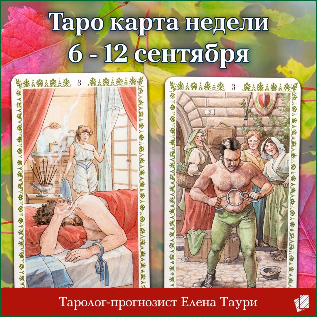 Карта недели с 6 по 12 сентября 8 жезлов, её уточняет 3 пентаклей.
