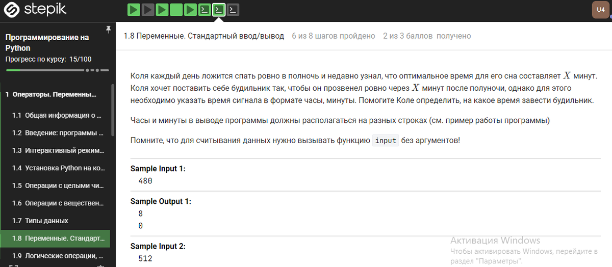 Сегодня я вернулся к изучение программирования на Stepic. Учень удобный сайт, бесплатный. Я решил начать именно с него. Как только закончу бесплатные курсы, начну обучаться более сложным вещам на платным. Стараюсь особо не напрягаться, продвигаюсь медленно, целеустремлённо и уверенно. Черепаха всегда побеждает кролика, это закон природы.