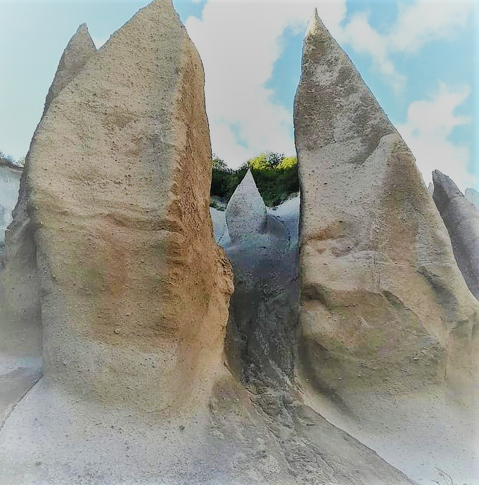 Пемзовые столбы образованные в процессе вулканической деятеятелтности, со временем из-за ветровой эрозии и воды открылись людям. Высота их достигает более 100м. Возраст более 8 т. лет. Раньше был под охраной государства. С 2018 года не охраняется.