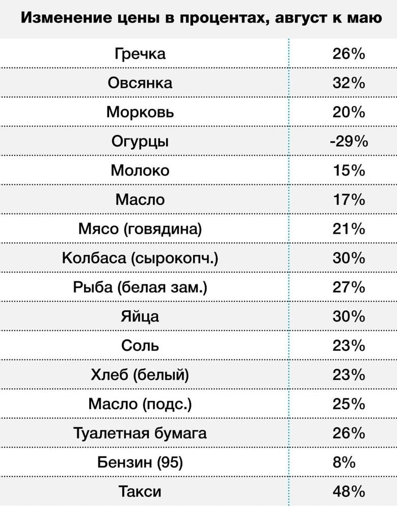 Это по заявлению Росстата у нас годовая инфляция только около 6,5%, но эти данные уже совсем только редкий наивный всерьез воспринимает. Ценники на прилавках магазинов говорят за себя. Одна из самых горячих тем весны-лета этого года – рост цен. Впрочем, это всегда было актуальным, но за прошедшее время рост просто бьет рекорды, что даже стало популярным понятие «борщевого набора». Это как бы скрытый такой вопрос – а сколько борщей в месяц ты можешь себе позволить? Дней в календаре остается столько же, как всегда, а вот купленных борщевых наборов – все меньше. Новая Газета показала некоторые расчеты роста цен на основные продукты питания, таблица составлена на основе опроса читателей. Указанный в ней процент подорожания – это первичная обработка 170 анкет. Не все согласны с цифрами, и это понятно – в разных регионах по-разному. Но огурцы подешевели же, просто ведь рухнули в цене!? «Чего вы нагнетаете?» Этот отрадный факт указывает на позитивные сдвиги в этом актуальном вопросе и вселяет