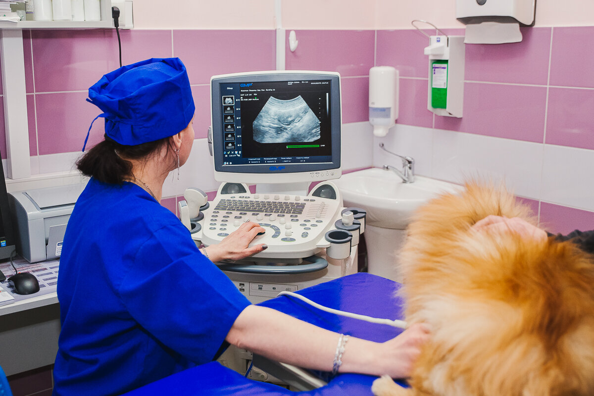 Матка – трубчатый слоистый орган. У кошек и собак матка двурогая, и состоит из тела матки, расположенного под мочевым пузырём, и двух рогов, исходящих в кранио-латеральном направлении от бифуркации. Бифуркацией называют место расхождения рогов от тела матки. Показания к УЗИ матки Обязательно стоит проводить УЗ-исследование матки при: Для чего необходимо УЗ-исследование матки? Ультразвуковое исследование матки позволяет выявить: Беременная матка начинает лоцироваться с 15-го дня беременности, плоды в полости матки можно увидеть с 21-28 дня. В зависимости от качества аппаратуры, начиная с 28-го дня можно увидеть слабые мерцательные движения – сердцебиение плода. Между 25-ым и 42-ым днем можно отчётливо увидеть движения плода. При помощи ультразвука можно оценить состояние плодов. Если при сканировании не визуализируется сердцебиение плода, вероятна его гибель. По положение плода в простарнстве, частоте сердцебиения относительно частоты сердцебиения матери (в 2D и поплеровских режимах) м