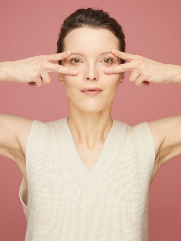 Взгляд является самой выразительной частью лица. Чтобы сохранить его как можно дольше, существует такие цели как сгладить, заполнить, и тд. Откройте для себя упражнения, которые нужно выполнять перед зеркалом. Тонизируйте веки: V- образными пальцами поместите средний палец на скуловую кость, а указательный палец - на кончик брови. Растянитесь, расширив раскрытие пальцев наружу, и постарайтесь закрыть веки. Делать 3 раза по 5 секунд. Дренажные мешки и темные круги: кончиком гуаши выполните пять разглаживающих движений от внутреннего уголка глаза по скуловой кости, чтобы стимулировать микроциркуляцию и выпустить воздух из мешков. Верхние веки: приложите кончики пальцев к векам, чтобы они оставались закрытыми, и попытайтесь открыть глаза. Поддерживайте это напряжение в течение нескольких секунд 5 раз. Разгладьте «гусиные лапки»: расположите кончики пальцев на уровне висков и аккуратно растяните кожу перпендикулярно складкам «гусиных лапок». Помимо массажа необходим дополнительный уход