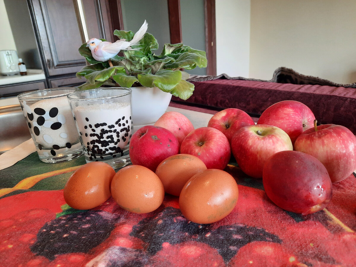 #яблоки рецепт #дачный урожай #выпечка к чаю #шарлотка с яблоками #шарлотка рецепт #секрет #еда и рецепты Яблоки! Как много в этом звуке! Конец лета и почти у каждого дачника квартиры и дачи начинают наполняться ароматами свежих летник яблочек. Один из самых вкусных способов пустить их в дело - это шарлотка! Вкусный и простой пирог, куда можно "запихнуть" много-много яблок!) Сегодня я предлагаю Вам добавить в классическую шарлотку один ингредиент, который только украсит классический пирог! Вам понадобиться: 1) 5-6 небольших яблок 2) 2-3 нектарина или персика 2) 1 стакан сахара 3) 4 яйца 4) 1.5 стакана муки 5) 1 чайная ложка соды + уксус Способ приготовления: Я люблю когда в пироге очень много начинки, поэтому добиваюсь такой консистенции, когда будут яблоки обмазанные тестом, а не тесто с яблоками. 1) в глубокой миске смешиваем яйца и сахар. Затем добавляем муку, все тщательно перемешиваем и добавляем чайную ложку соды, погашенную уксусом. 2) чистим яблоки и нектарины (персики